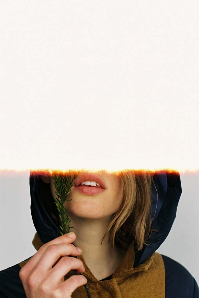 COAT: WC102 IVORY / KNIT PULL OVER: FC358 ORANGE / PIERCES: AC96KP ORANGE*GREY