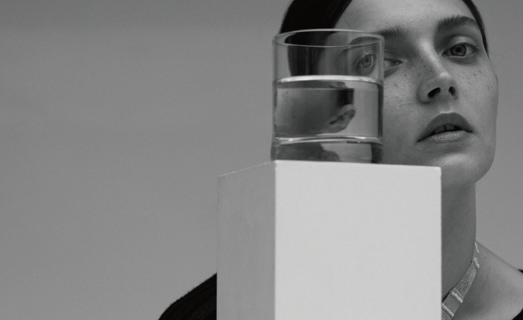 COAT: EC101 WHITE / TOPS: KNT211 IVORY / PANTS: EP99 WHITE / NECKLACE: AC130 BLACK / EARRINGS: AC127E GREY